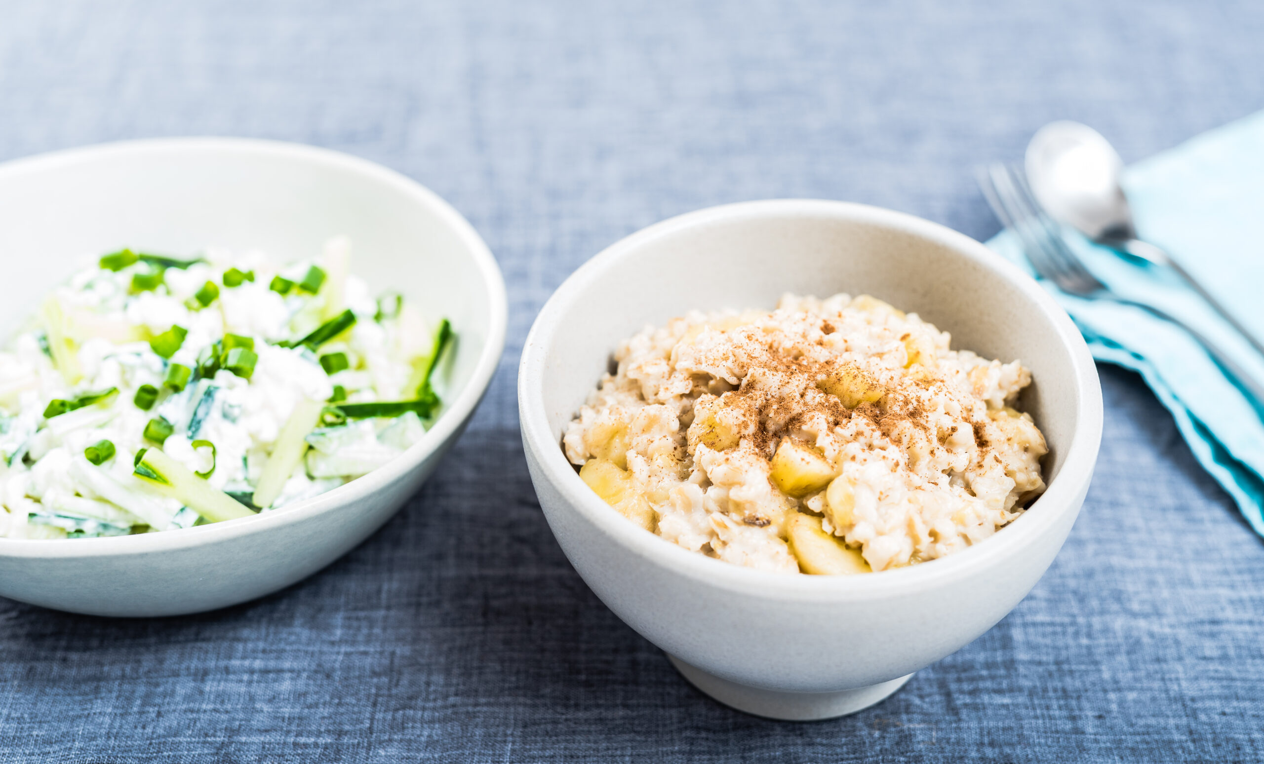 Koduleht » Retseptid » Banaani-kaerahelbepuder kodujuustusalatiga