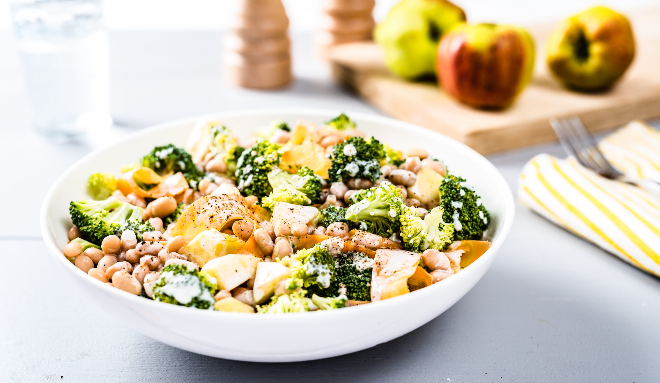 Lõika brokoli ja õun ampsusuurusteks tükkideks ning lõika porgand koorimisnoaga õhukesteks laastudeks.