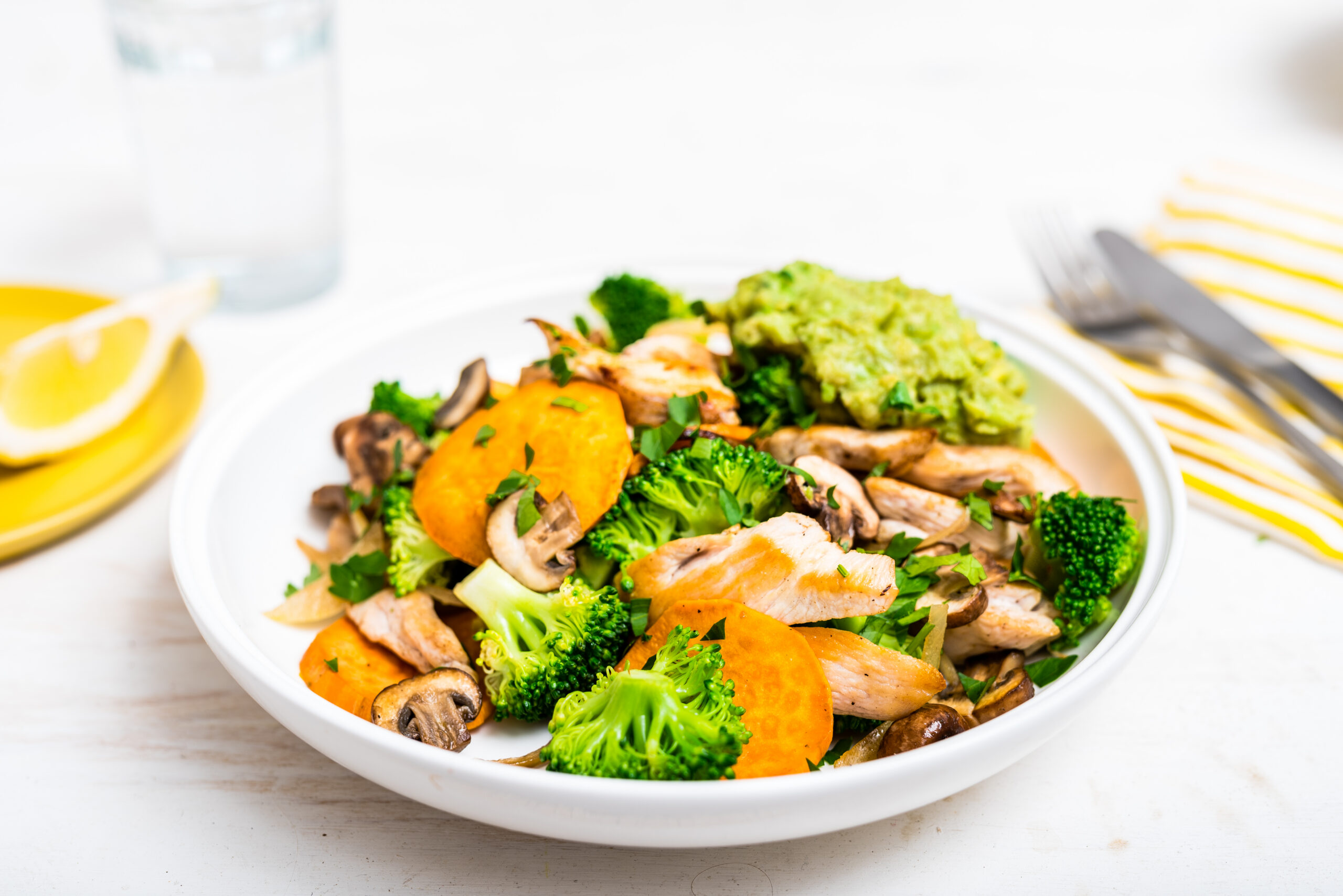Tükelda kanafilee ja brokoli, puhasta ja tükelda seened, haki sibul.