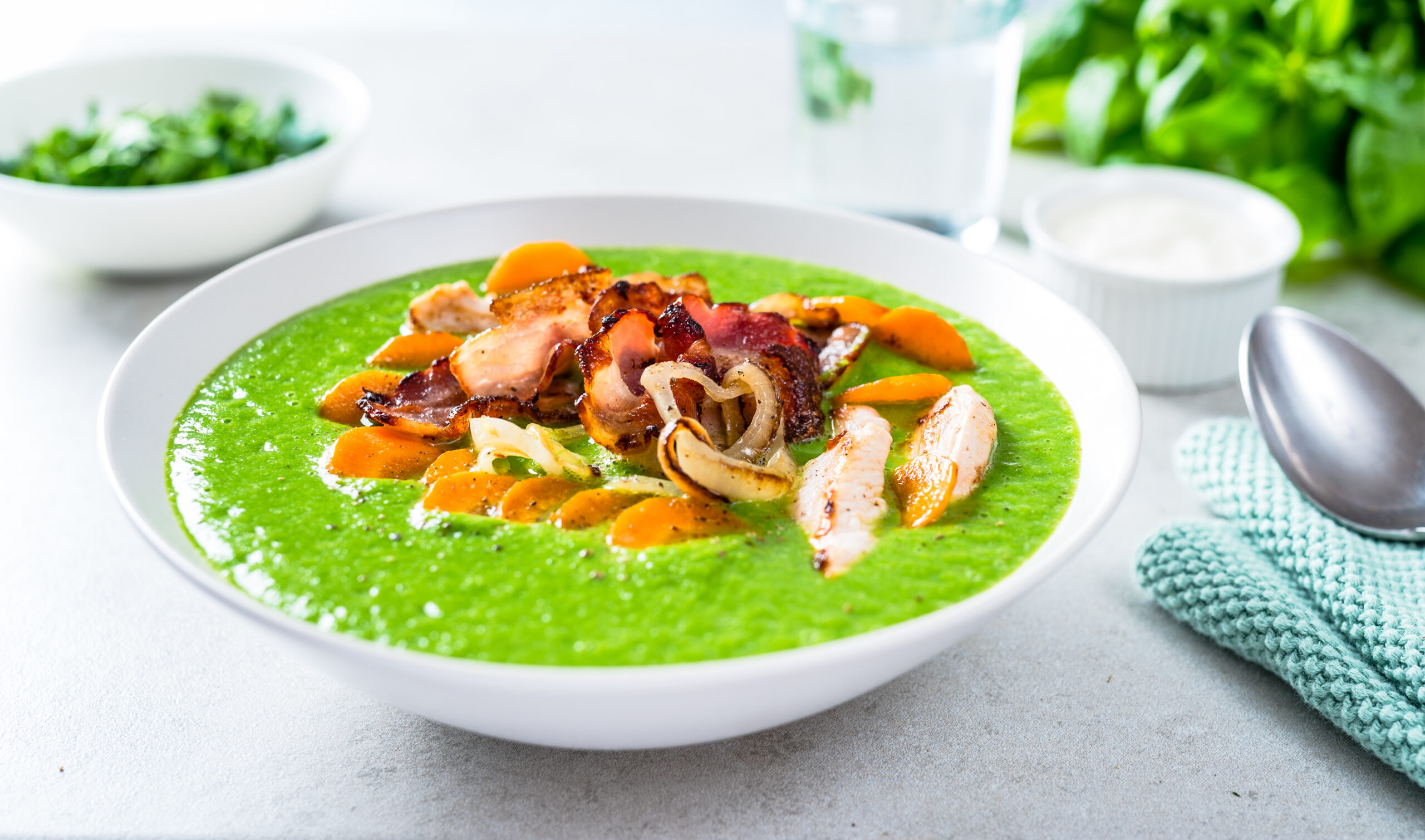 Koduleht » Retseptid » Herne-spinatisupp kana ja peekoniga