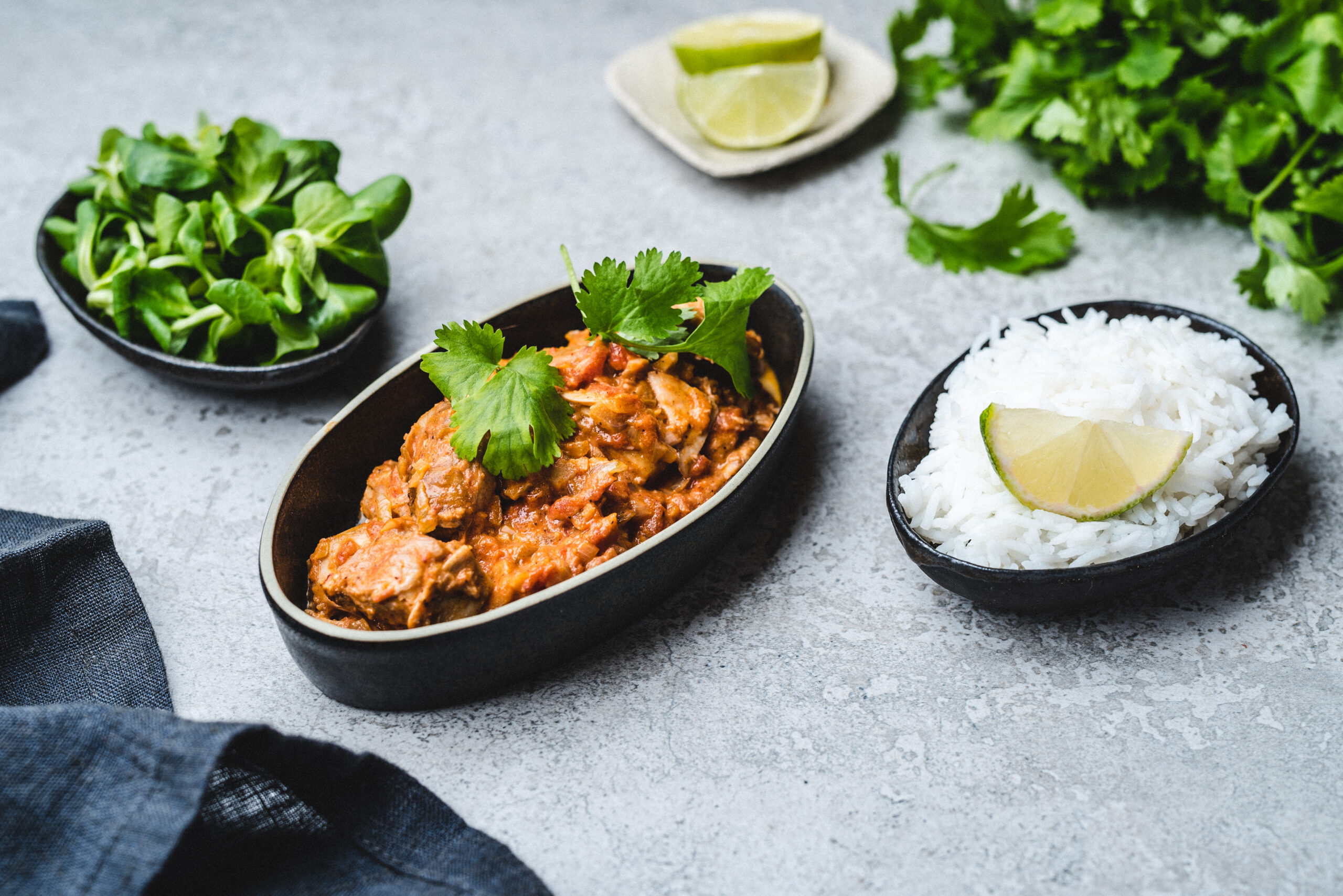 Serveeri võikana salati ja riisiga, kaunista ja maitsesta laimi ning koriandriga.