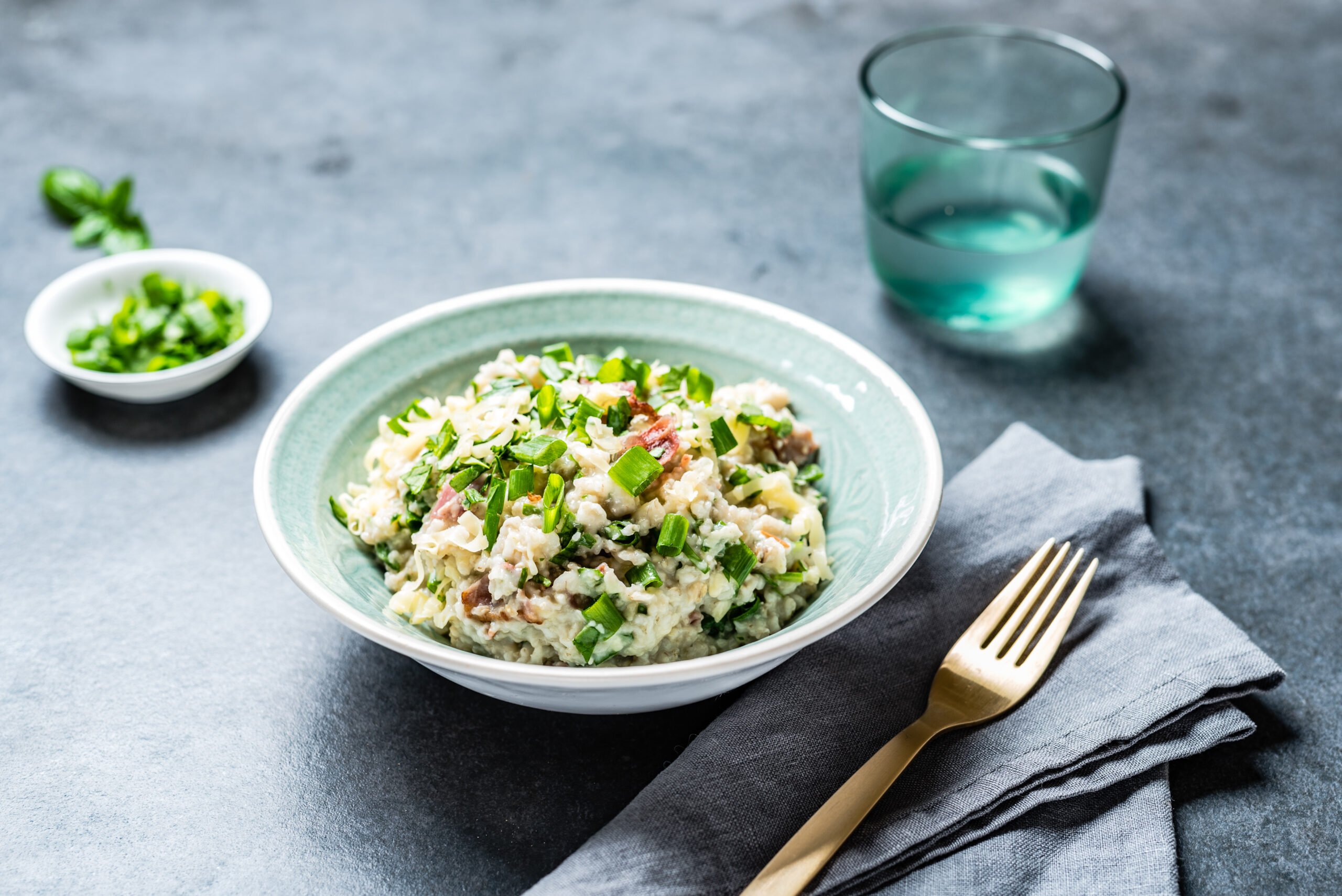 Serveeri soe kaerahelbepuder peekoni-köögiviljasalatiga.