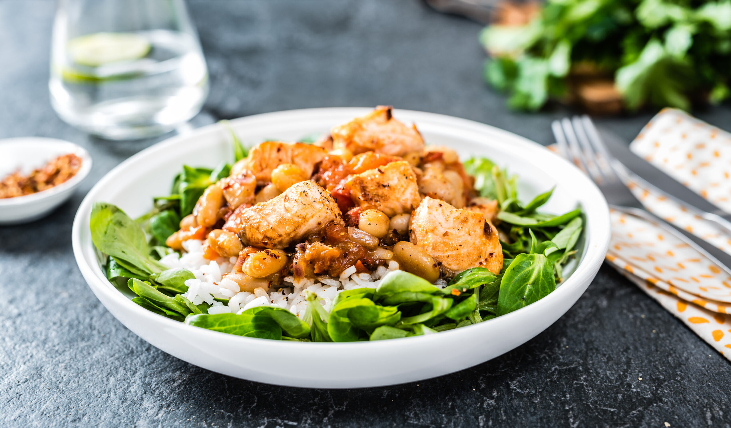 Serveeri chilli con carne koos keedetud riisi ja rohelise salatiga.