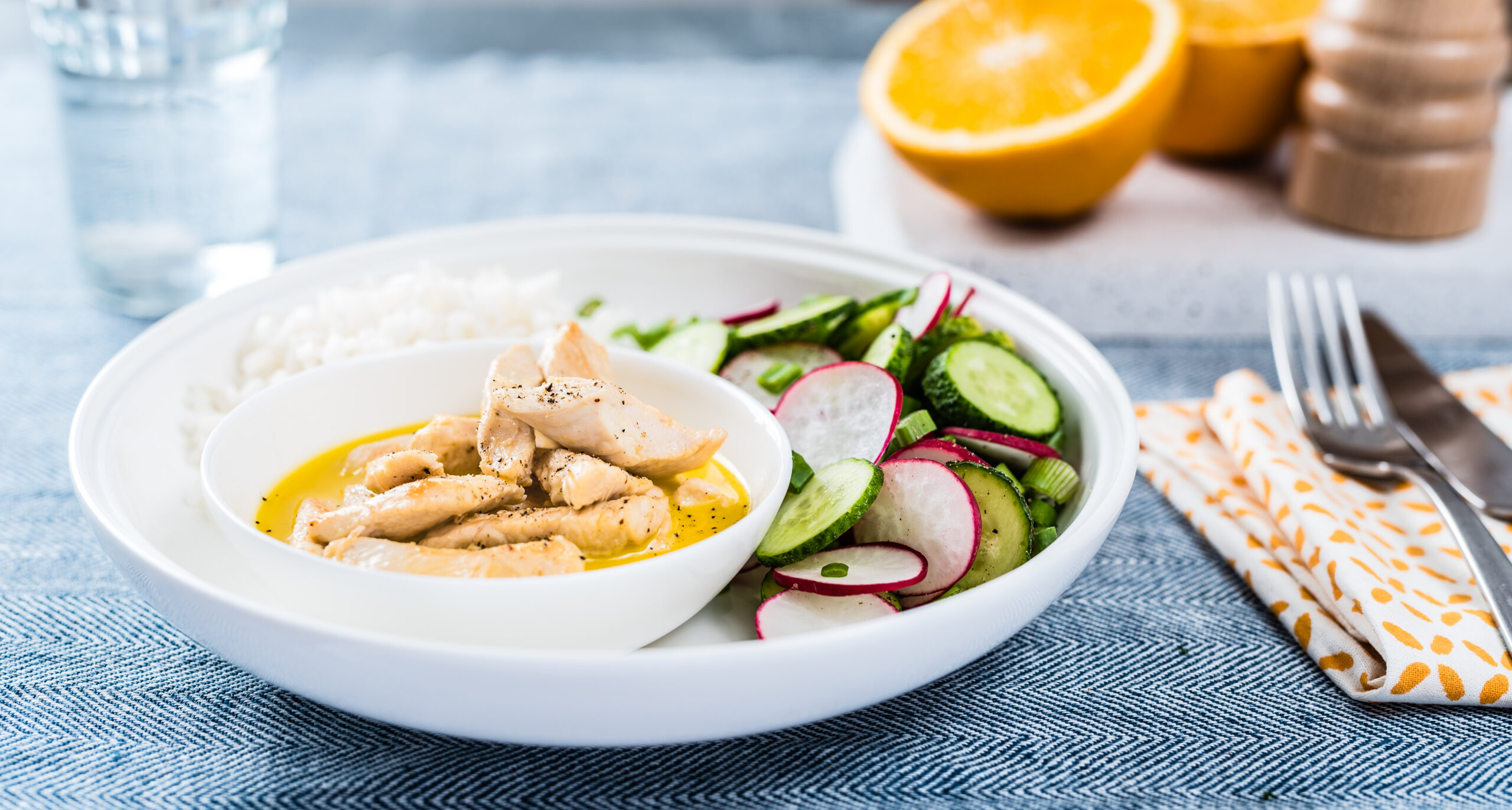 Tükelda redis, kurk ja roheline sibul ning sega salatiks.