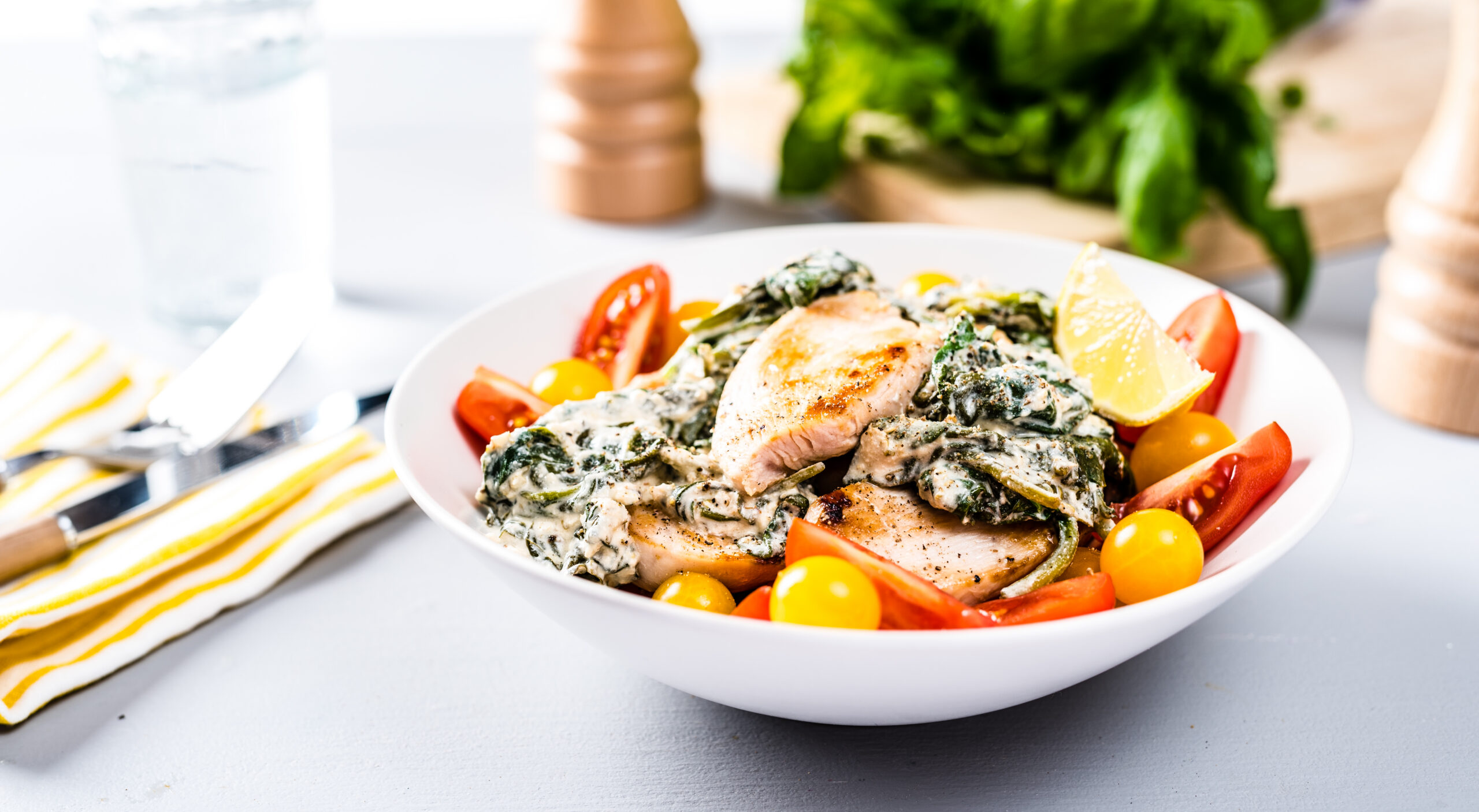 Serveeri kana spinatikastmega ja viilutatud tomatiga.