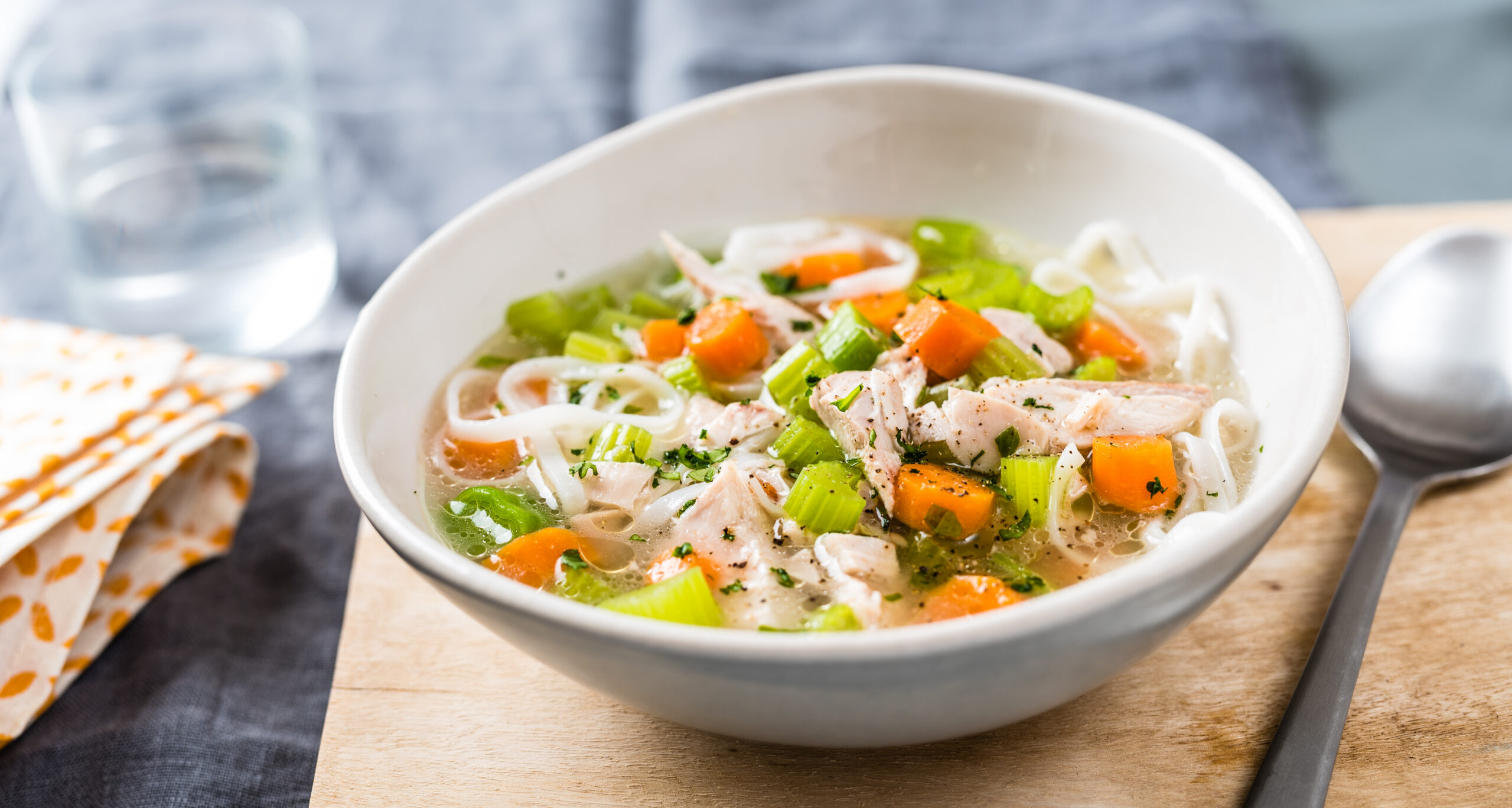 Kanasupp riisinuudlitega põhineb lahjal kanafileel, mis on klassikaline kvaliteetse valgu allikas. Selline valguannus hoiab kõhu kauem täis ja lihtsustab päevase kaloraaži kontrolli all hoidmist. Roog jääb kerge, kuid toitev – just sobiv valik, kui tahad samal ajal süüa hästi ja saada saledamaks.