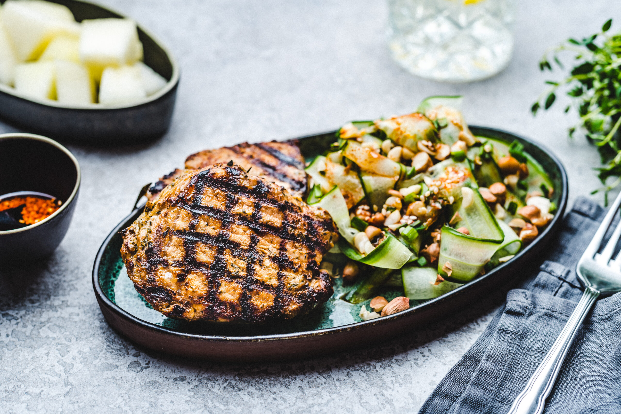Viiluta kurk, haki roheline sibul, purusta pähkleid pisut, sega kõik omavahel ning sega kokku salatikastmega vaherult enne serveerimist.