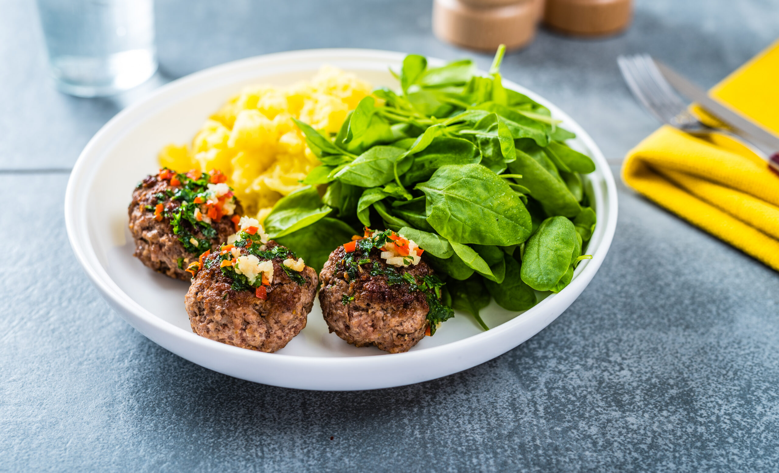 Serveeri kartulipüree kotlettide ja värske spinatiga.
