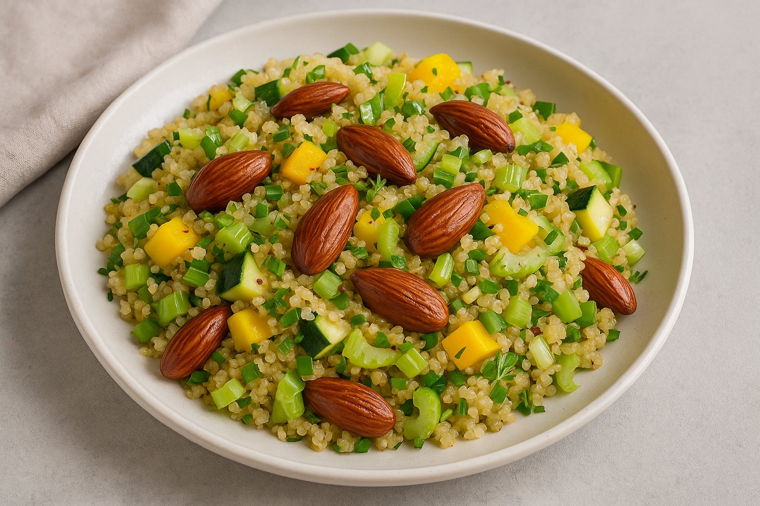 Lisa suvikõrvits, kata kaanega ning prae, kuni kinoa on pehme, 5-8 minutit. Eemalda pann tulelt.