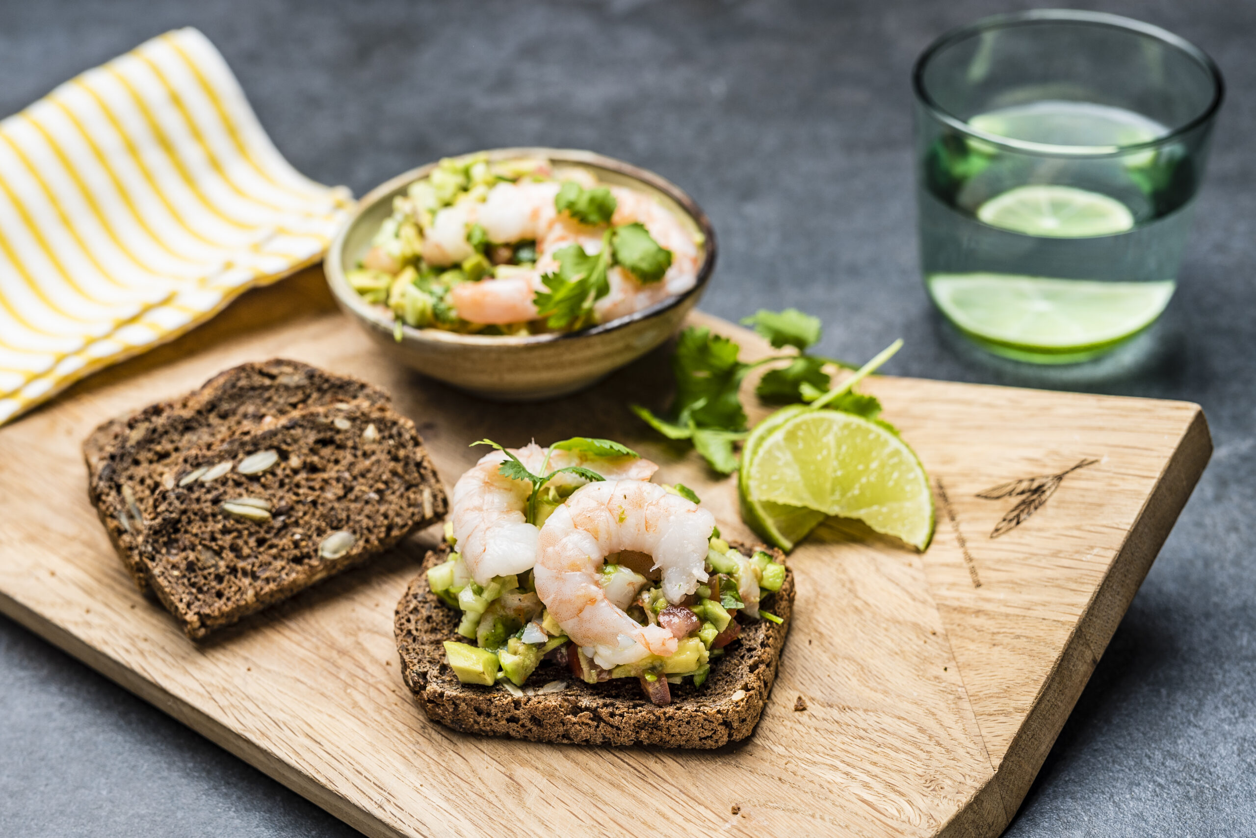 Soovi korral rösti leib ja serveeri krevetisalsaga.
