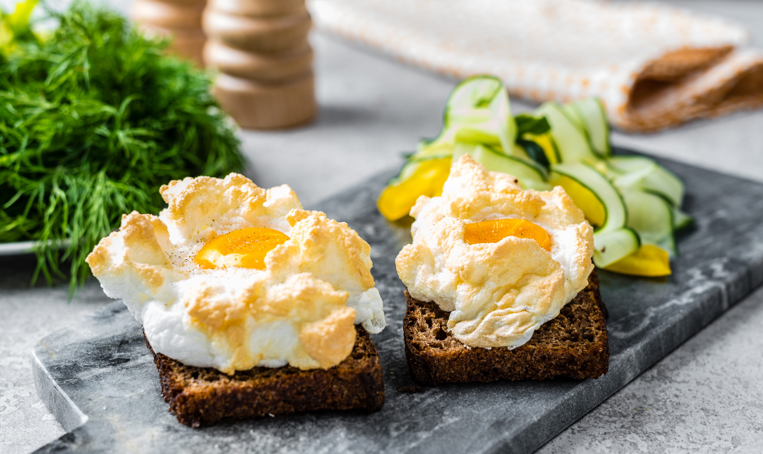 Lõika kurk ja paprika meelepärasteks tükkideks ning serveeri koos munapilvekestega.