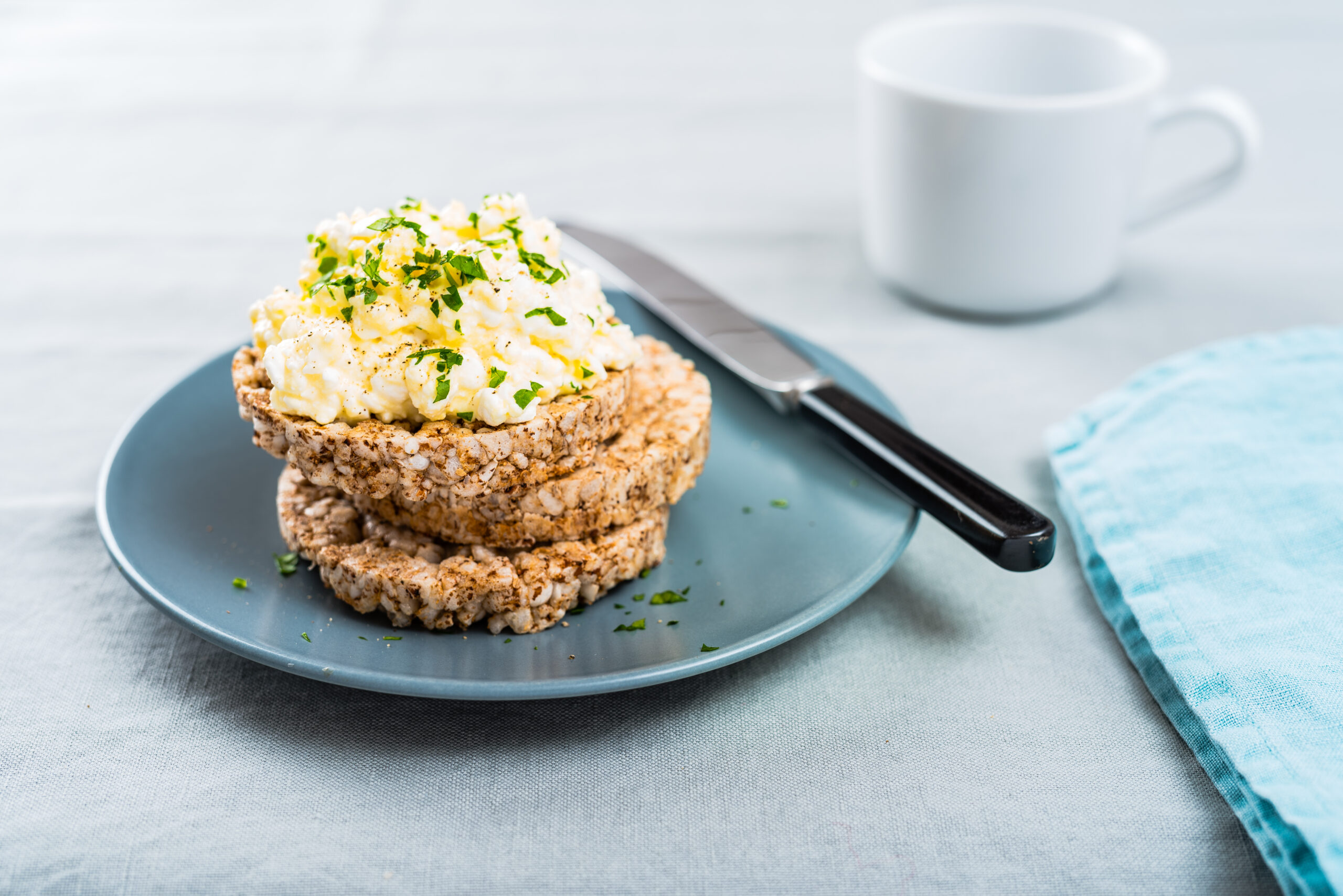 Vajuta kooritud munad kahvliga pehmeks. Sega muna, kodujuust, toasoe või ja sool ühtlaseks massiks.