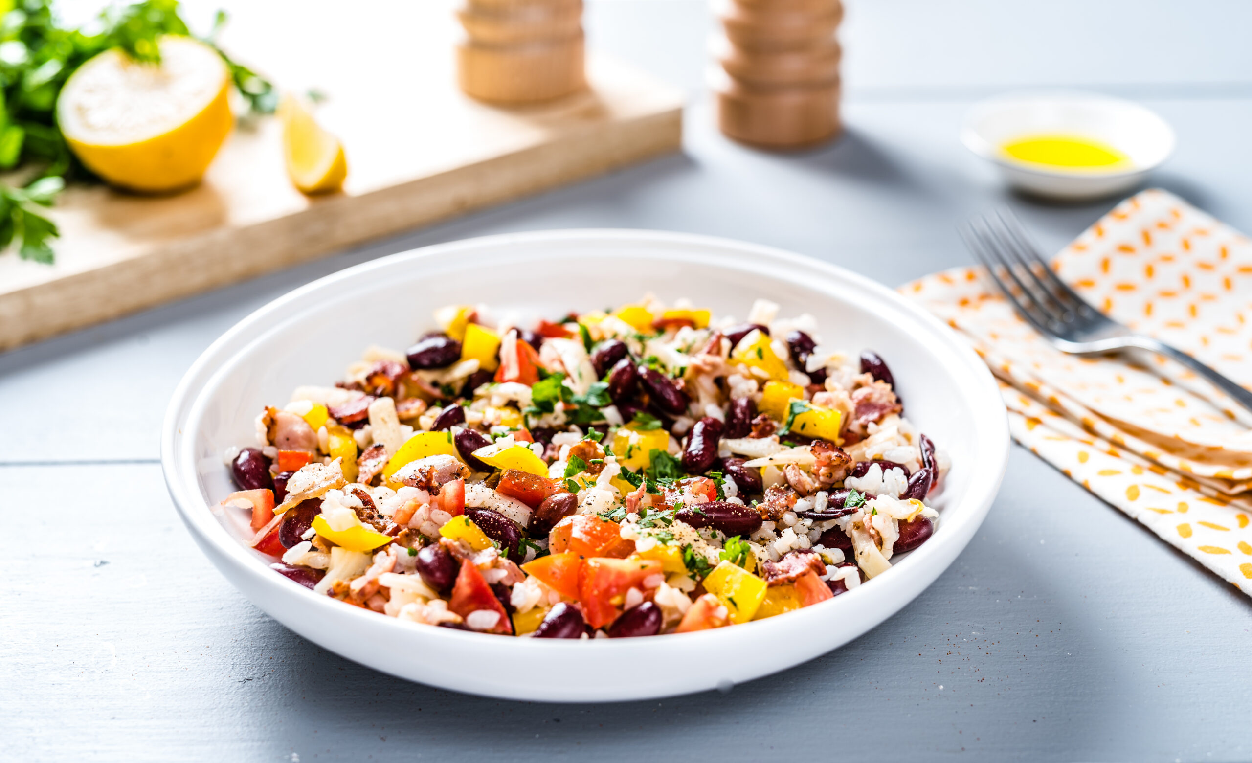 Kurna oad ja loputa kergelt. Tükelda tomat, paprika ja riivi suitsujuust.