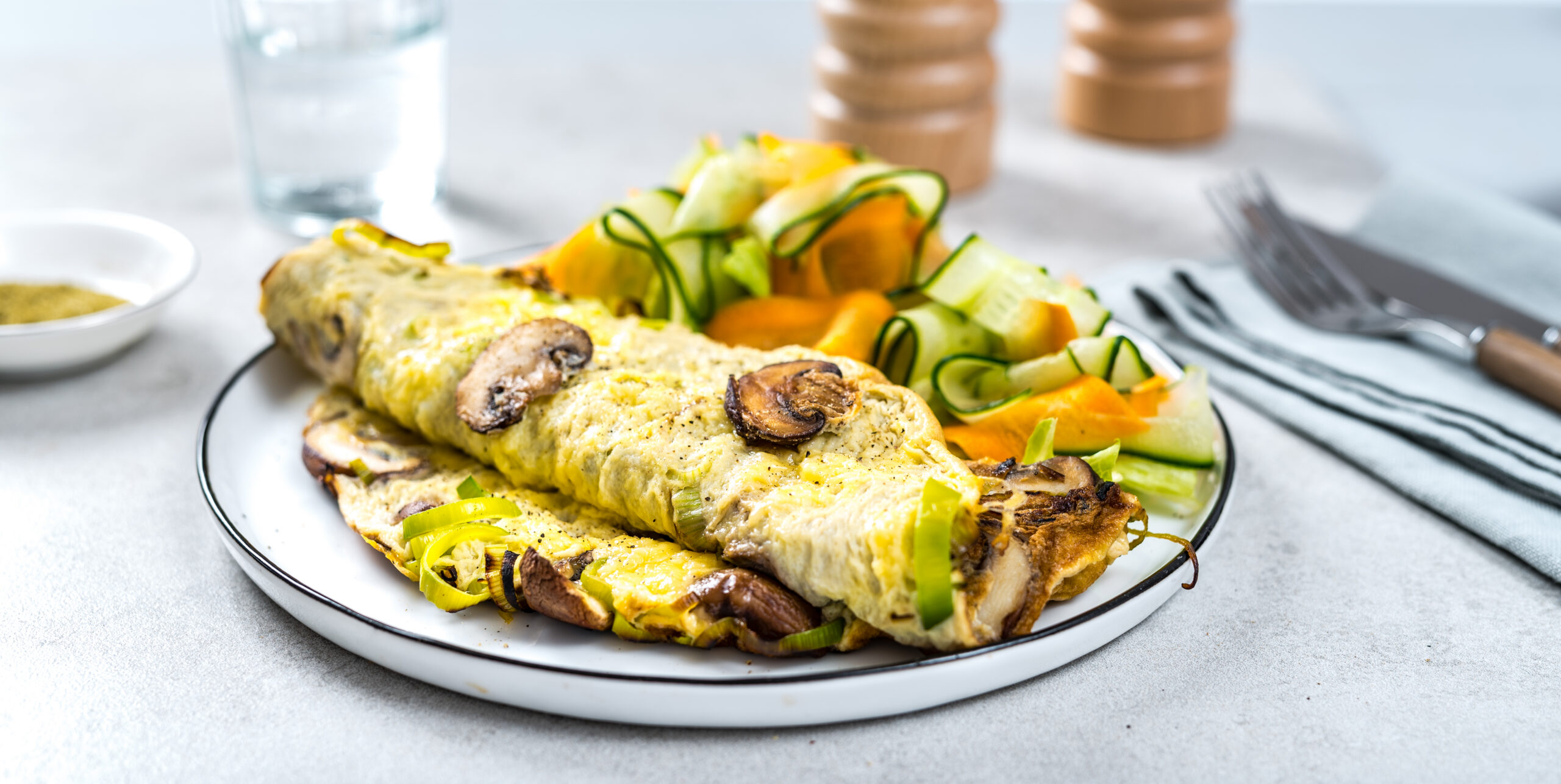Tükelda kurk, porgand ning jääsalat ja sega salatiks kokku. Serveeri salat koos omletiga.