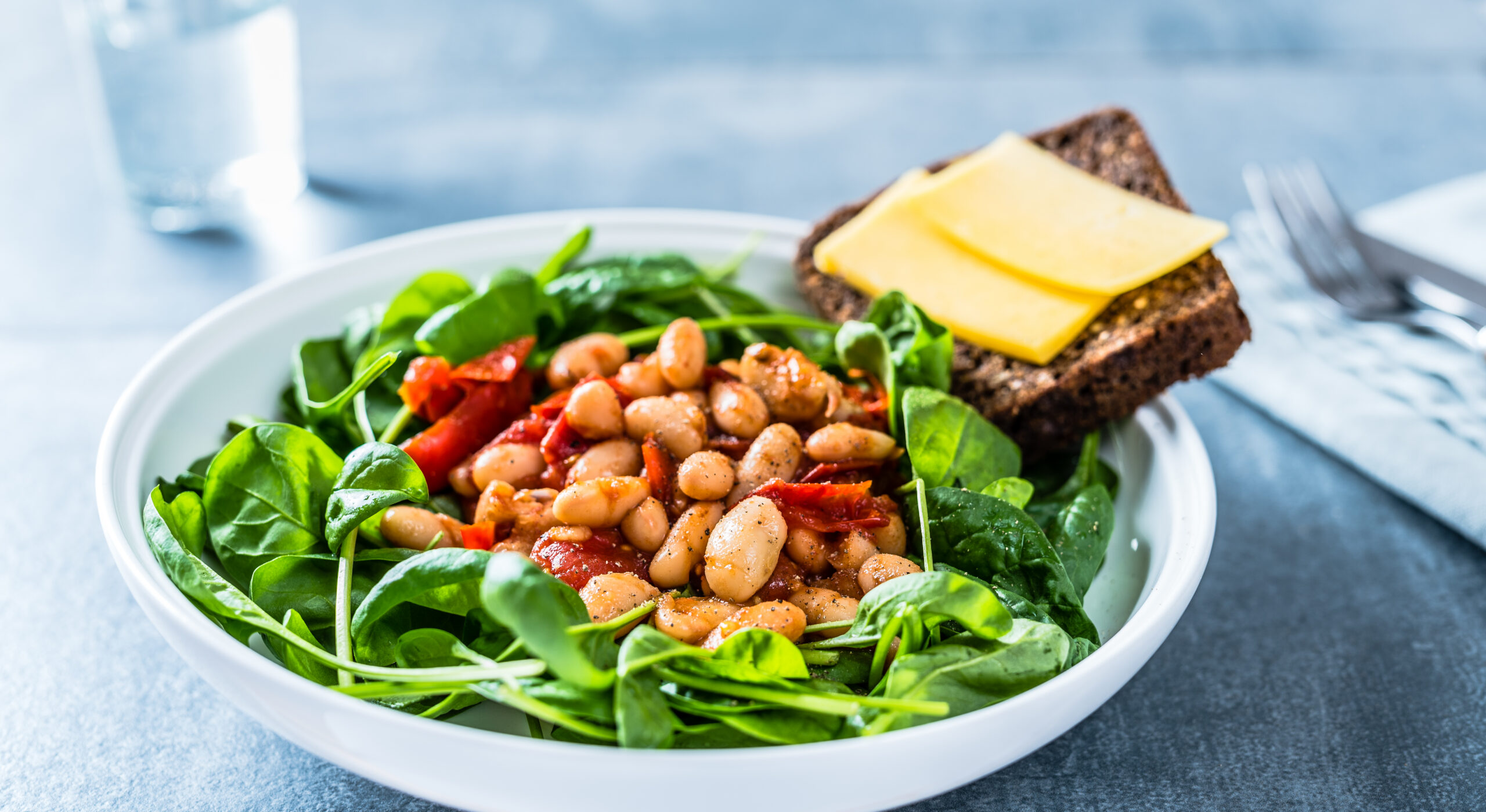 Röstitud leib juustu ja valgete ubadega tomatikastmes tõstab esile tomati, mis lisab roale looduslikku happesust ja palju C-vitamiini. Tomat on veerikas ja madala energiasisaldusega, mis tähendab, et kõht saab täis, kuid kalorid jäävad mõistlikuks. Tänu kergele tomatipõhjale sobib roog suurepäraselt päevadeks, mil soovid hoida kaloraaži kontrolli all.