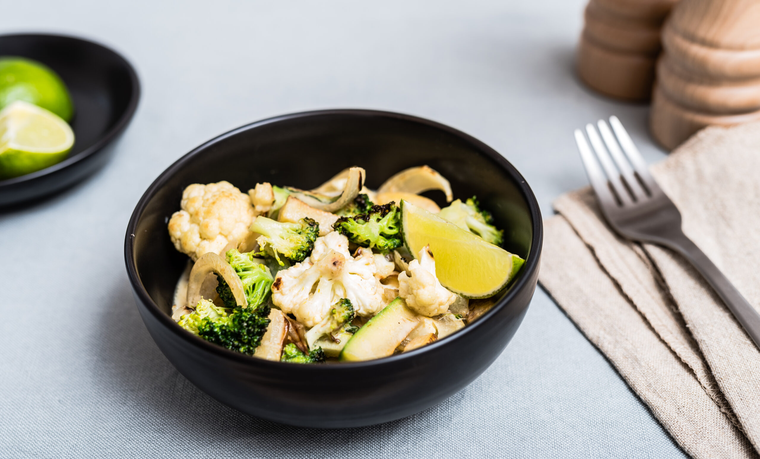 Tõsta köögiviljad pannile ja prae umbes 2-3 minutit. Seejärel lisa köögiviljadele karripasta (1-2tl serveeringu kohta) ja prae veel 1-2 minutit. Lisa kookospiim (100ml serveeringu kohta), värskelt pressitud laimimahl, mesi, maitseained ja kalakaste (maitse järgi) ning kuumuta tasasel tulel veel 5 minutit. NB! Lisa maitseaineid ja mett pigem tagasihoidlikes kogustes ja maitse peale igat lisamist/segamist.