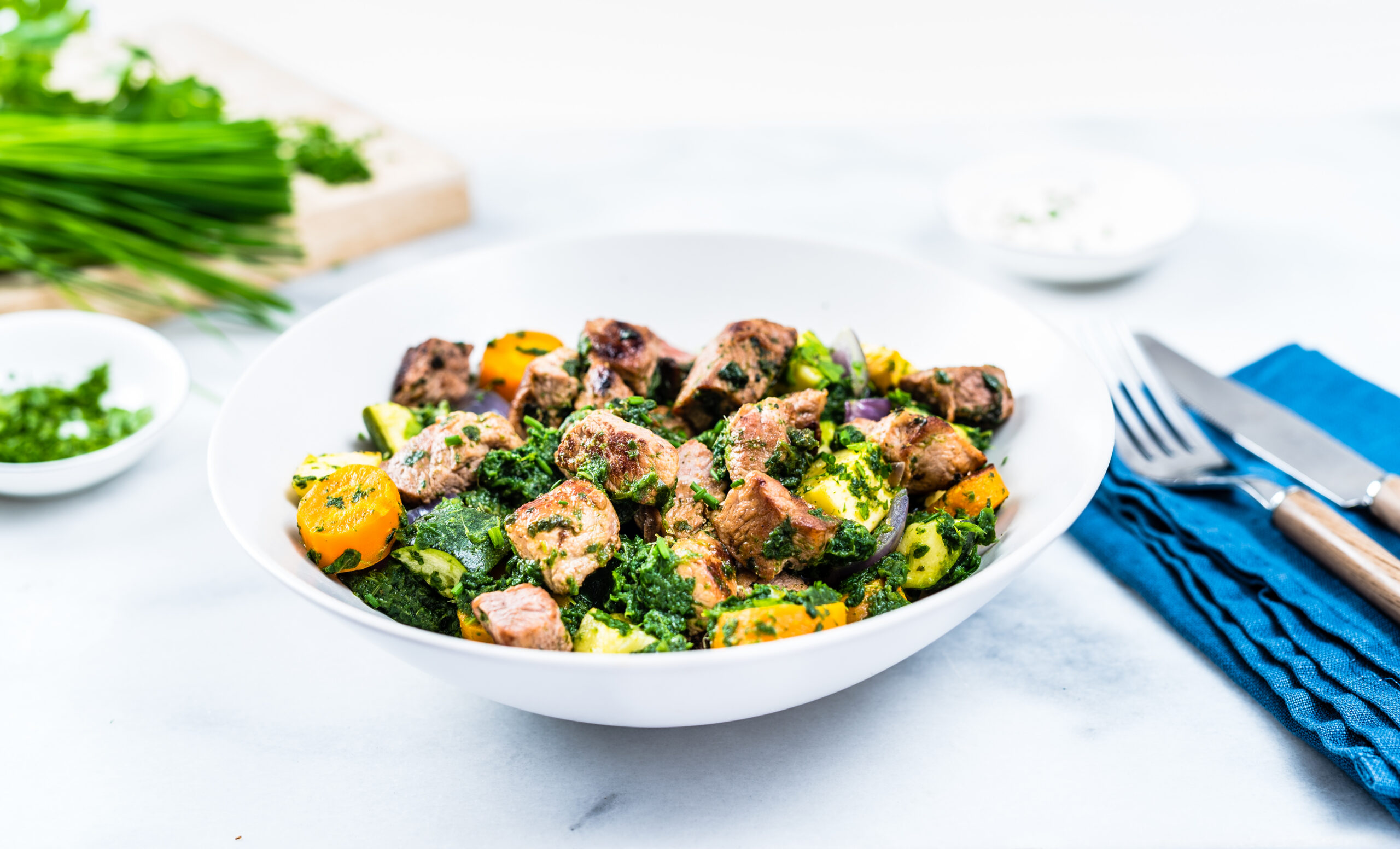 6. Sega liha ja juurviljad kokku ning maitsesta ürdisoolaga, serveeri hakitud peterselliga.