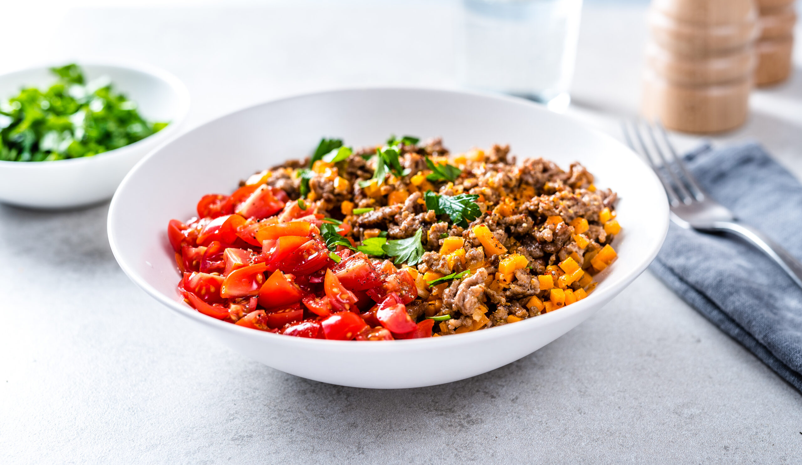 3. Serveeri hakklihasegu koos tomatitega.