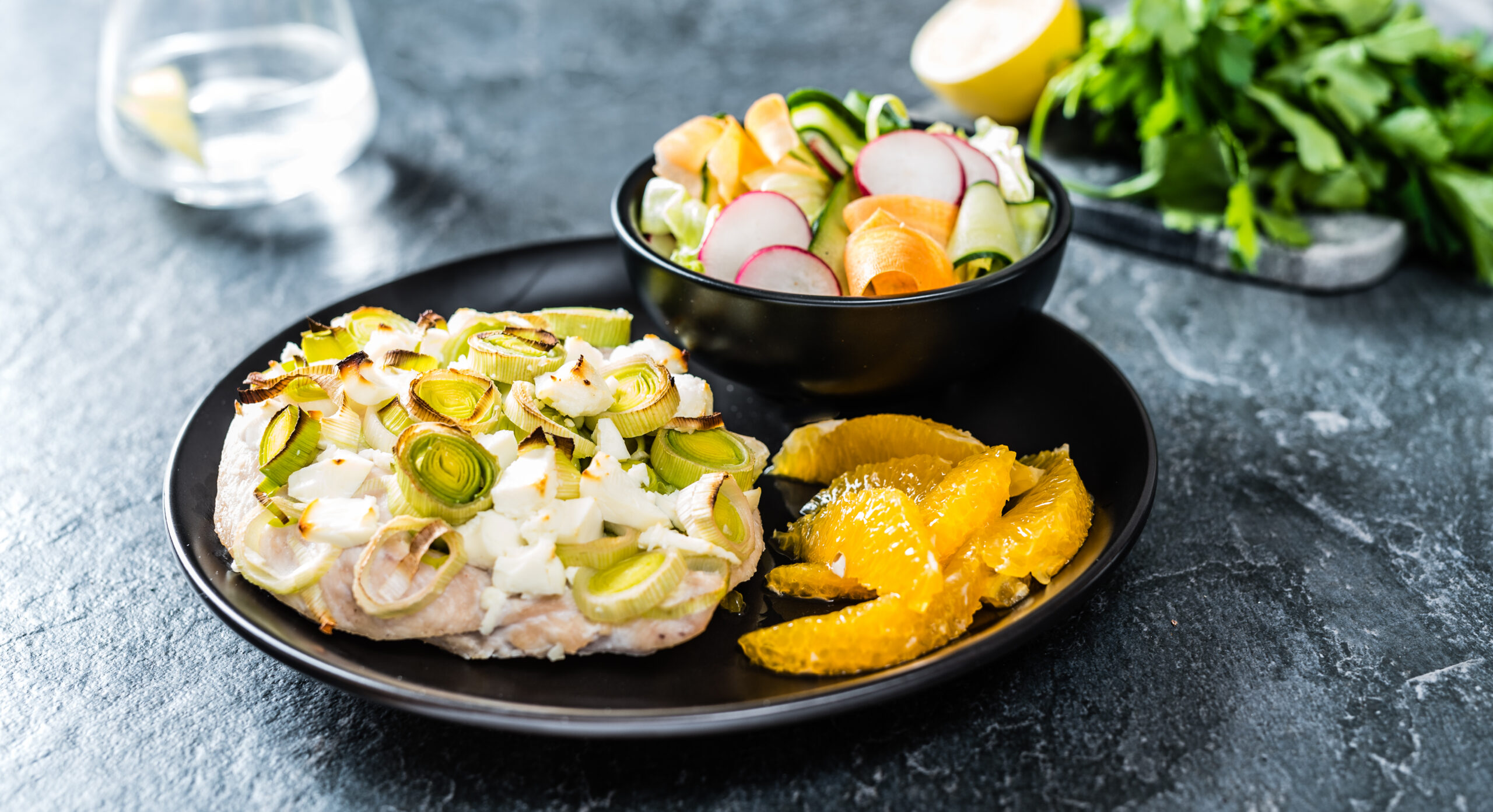 6. Serveeri kanafilee värske salati ja apelsiniviiludega.