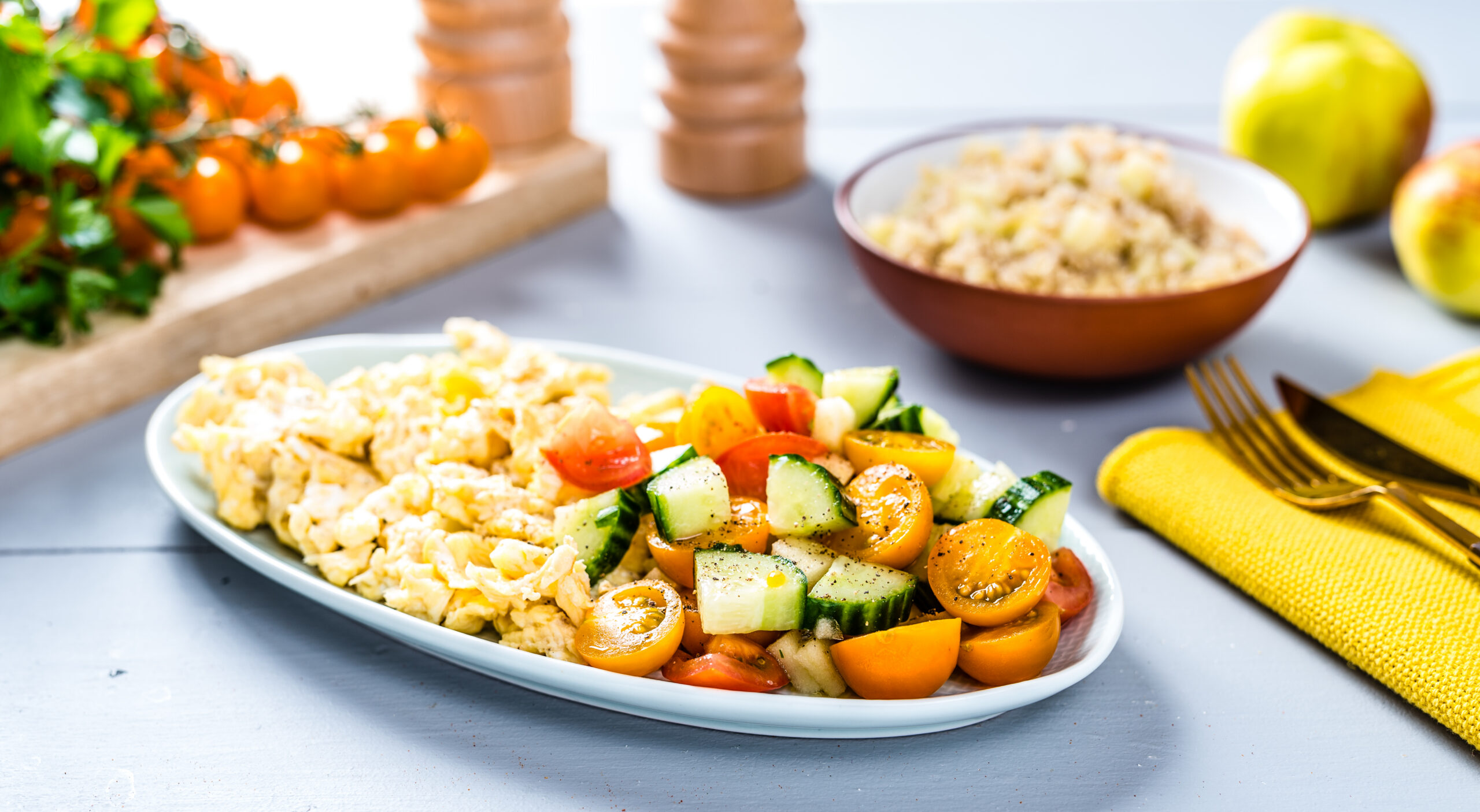 4. Tükelda kurk ja tomat ning sega salatiks kokku.