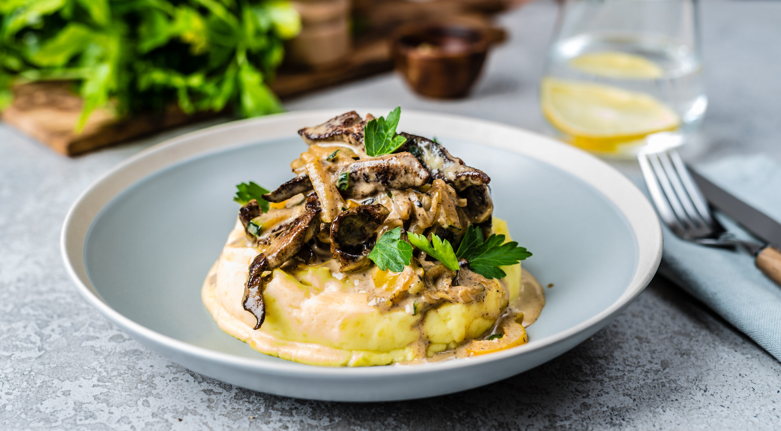 5. Serveeri kartulipüree juurvilja-maksakastmega.