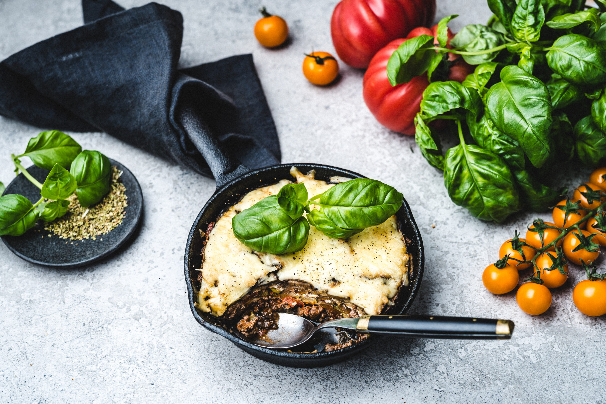 5. Laota küpsetusvormi põhja tihedalt baklažaan, siis tomatine hakkliha, siis Kreeka jogurt, siis suvikõrvitsa viilud(tee nii palju kihte kui soovid) ja kõige peale riivitud juust või juustuviilud.