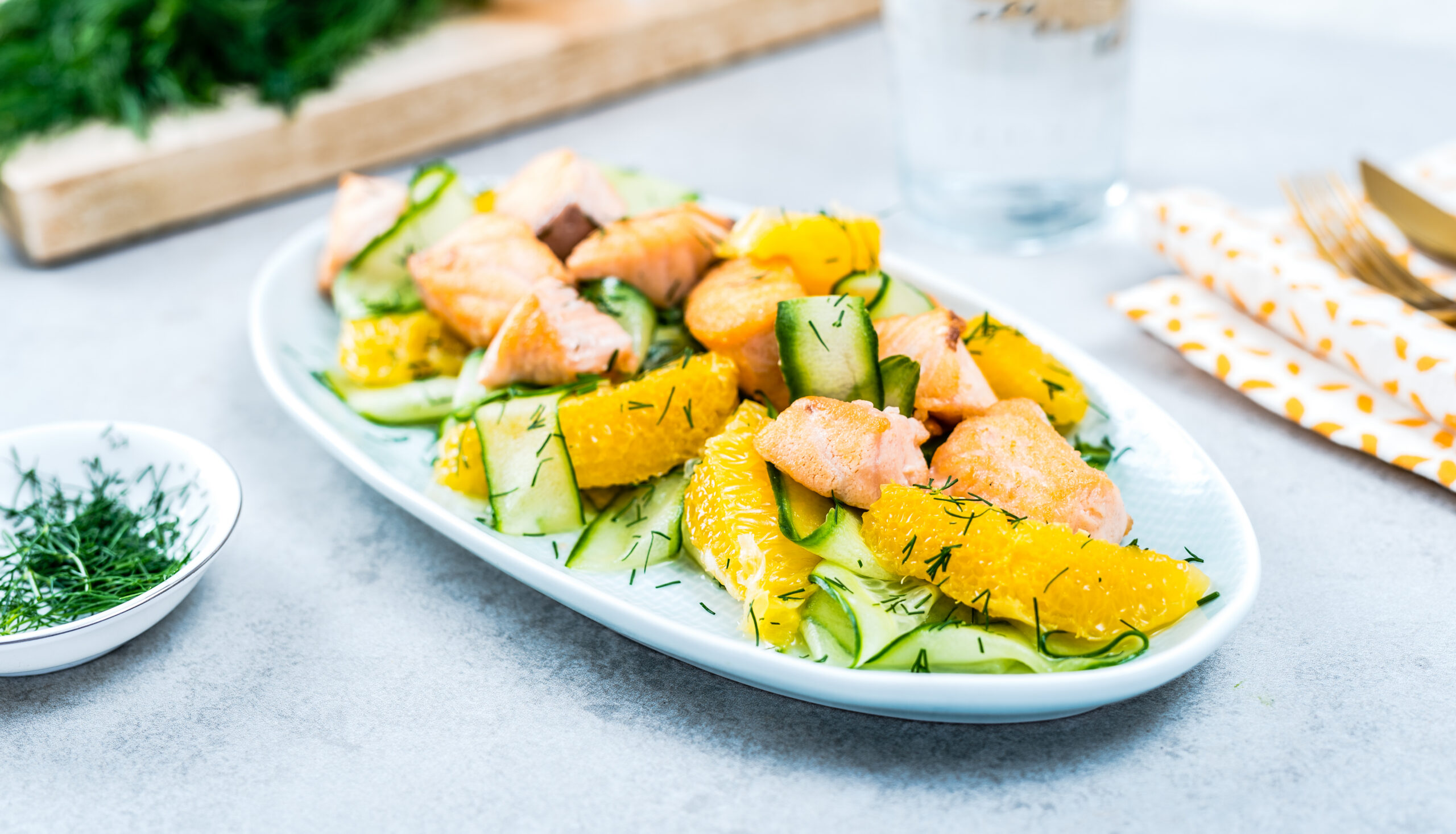 Koduleht » Retseptid » Lõhe apelsini-kurgisalatiga