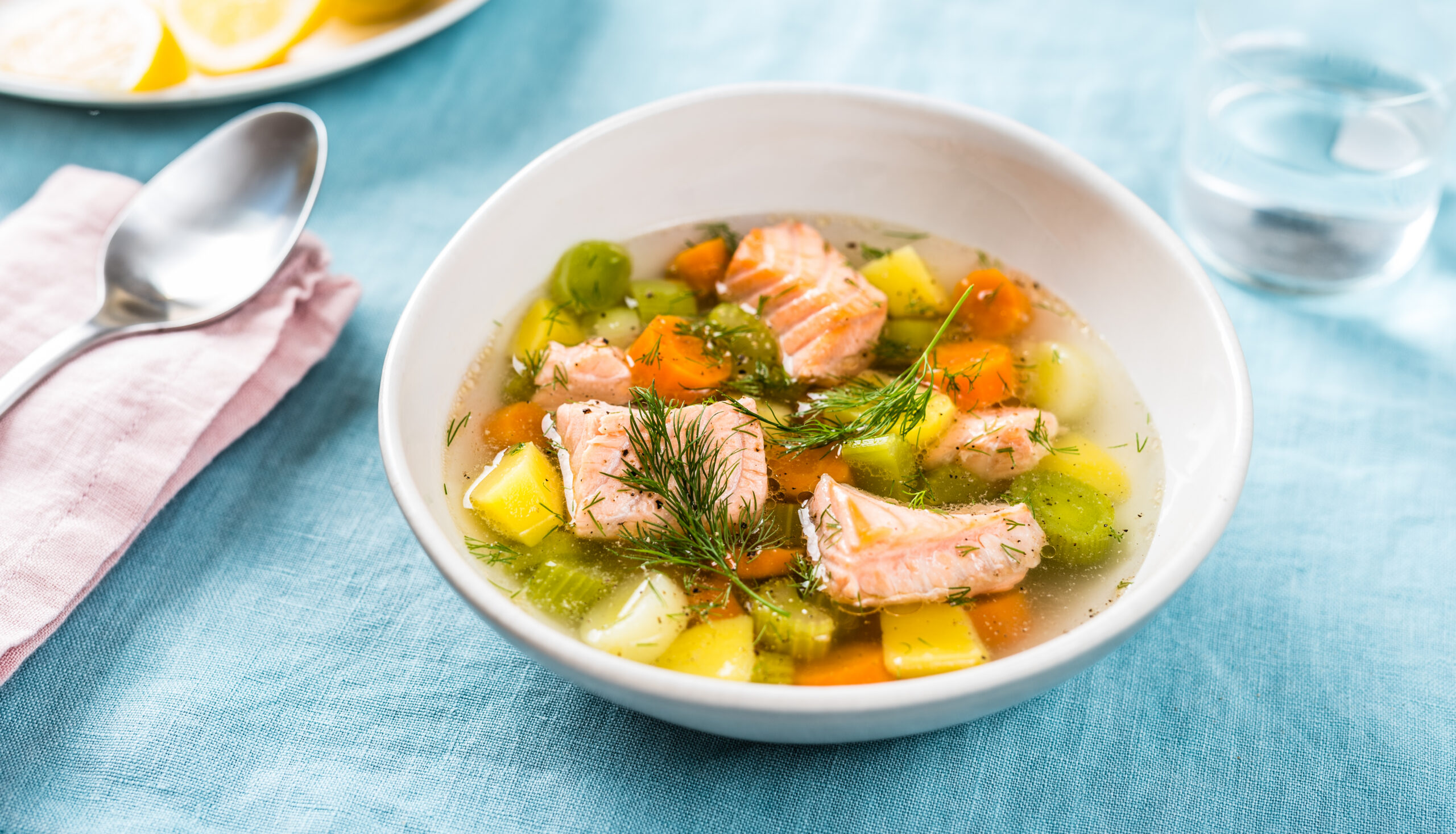 6. Kui köögiviljad on umbes 10 minuti jooksul pehmeks keenud, siis lisa potti lõhefilee tükid ja eemalda kuumuselt.