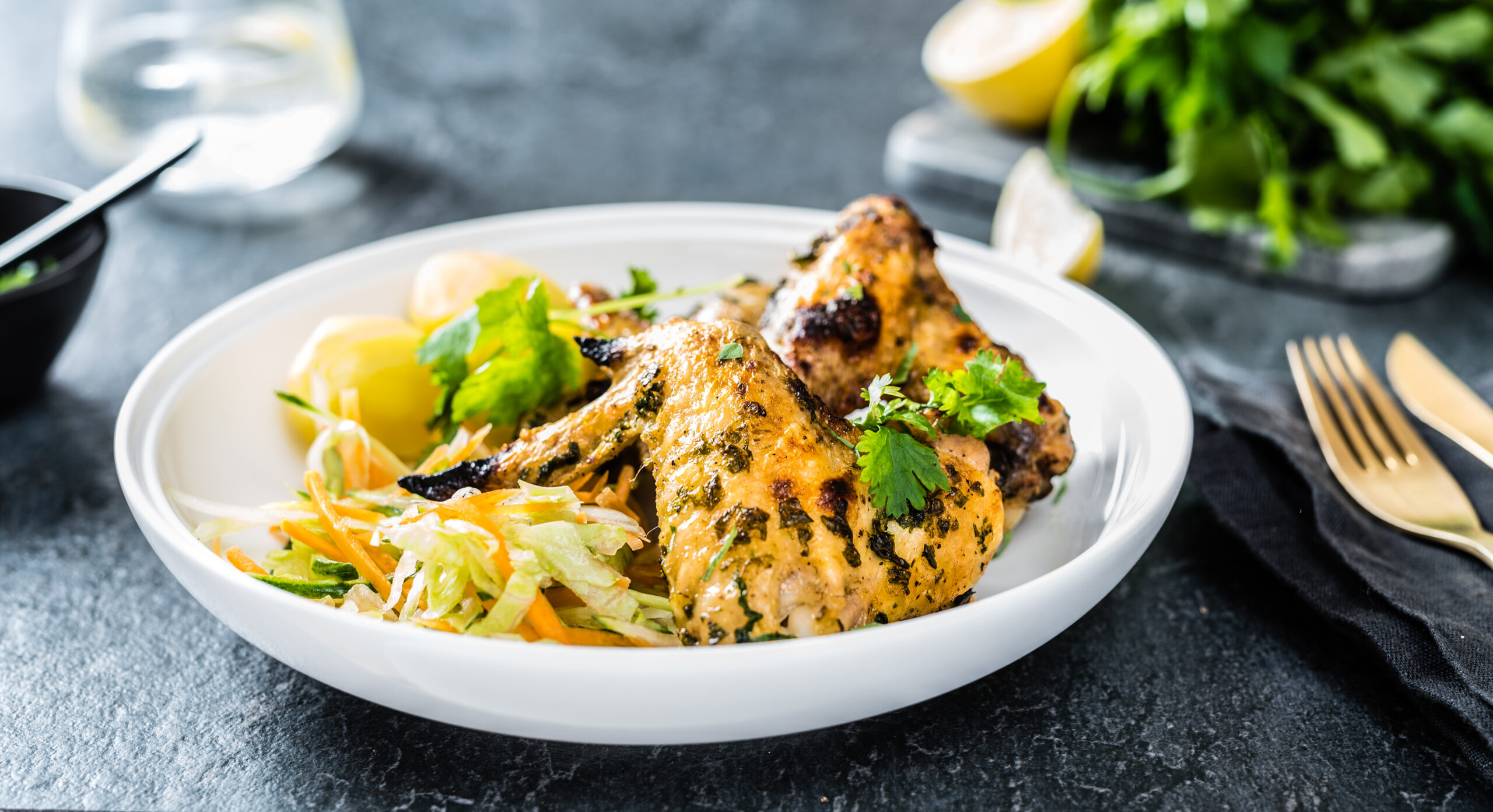 2. Haki petersell ja koriander ning sega need siis oliivõli ja maitseainetega kokku. Hõõru saadud segu kanatiibadele.